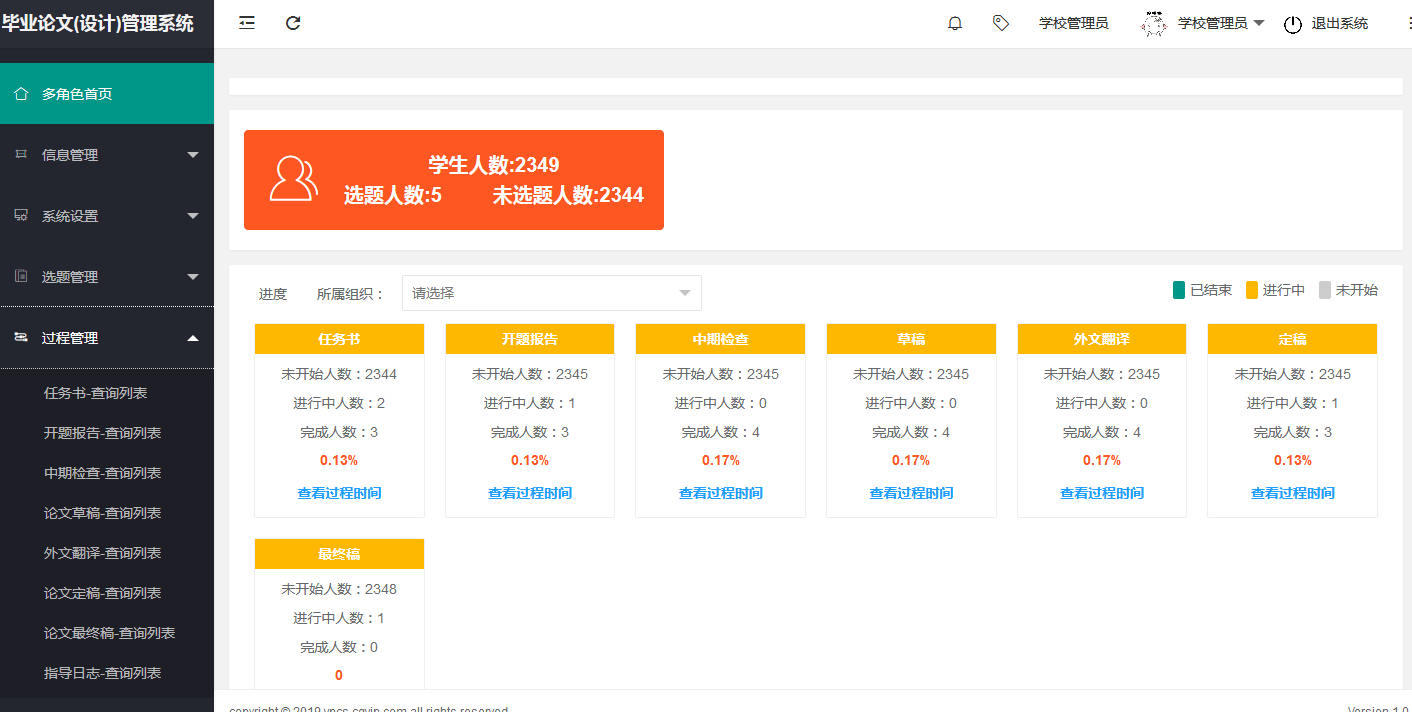 使用信息化手段来管理必赢官网毕业设计工作,是针对本科合格评估对毕业设计(论文)管理工作规范化、数字化的要求。该系统依据必赢官网毕业设计工作流程定制开发,涵盖学校毕设全流程,包含在线选题、开题报告、中期检查、论文写作、评阅答辩、成绩公布等各个环节。系统真正实现了毕业论文设计过程管理的智能化,提高了毕业论文(设计)管理的效率,保证了毕业论文设计的质量,便于学校更好的统计和分析毕业设计工作在不同阶段的执行情况,引导学生有序高效地完成毕业设计流程。