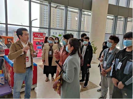 京东物流教育产业平台西北区负责人吴亚京热情接待了老师和学生们,并对京东物流的企业文化进行了详细地讲解,带领大家参观了京东航天直播基地和办公场地等区域。