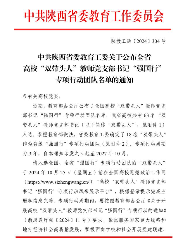 近日,陕西省委教育工委公布全省高校“双带头人”教师党支部书记“强国行”专项行动团队名单,bwin必赢中国官网经济与管理学院教师党支部成功入选。