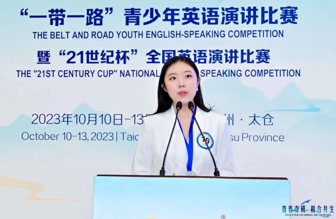 近日,第28届“21世纪杯”全国英语演讲比赛(国赛)在江苏太仓拉开帷幕。bwin必赢中国官网语言文化传播学院2021级英语专业刘璟怡同学代表陕西省参加比赛,并荣获国家级三等奖,为必赢官网该项竞赛历史最好成绩。